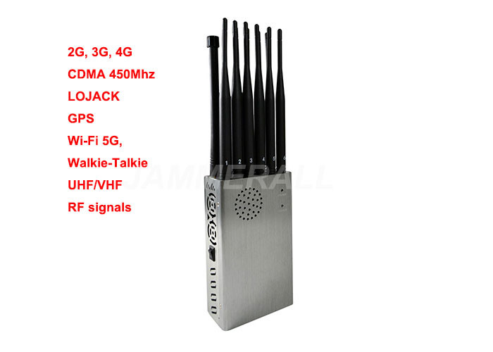 แบบพกพา UHF VHF Jammer วงเต็มโทรศัพท์มือถือ 4G / 3G / 2G WiFi / GPSL1 / LOJACK